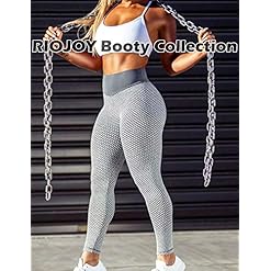 RIOJOY Women’s High Waist Leggings 3D Mesh Knitted Ruched Butt Lifting Honeycomb Yoga Pants, S, Grey